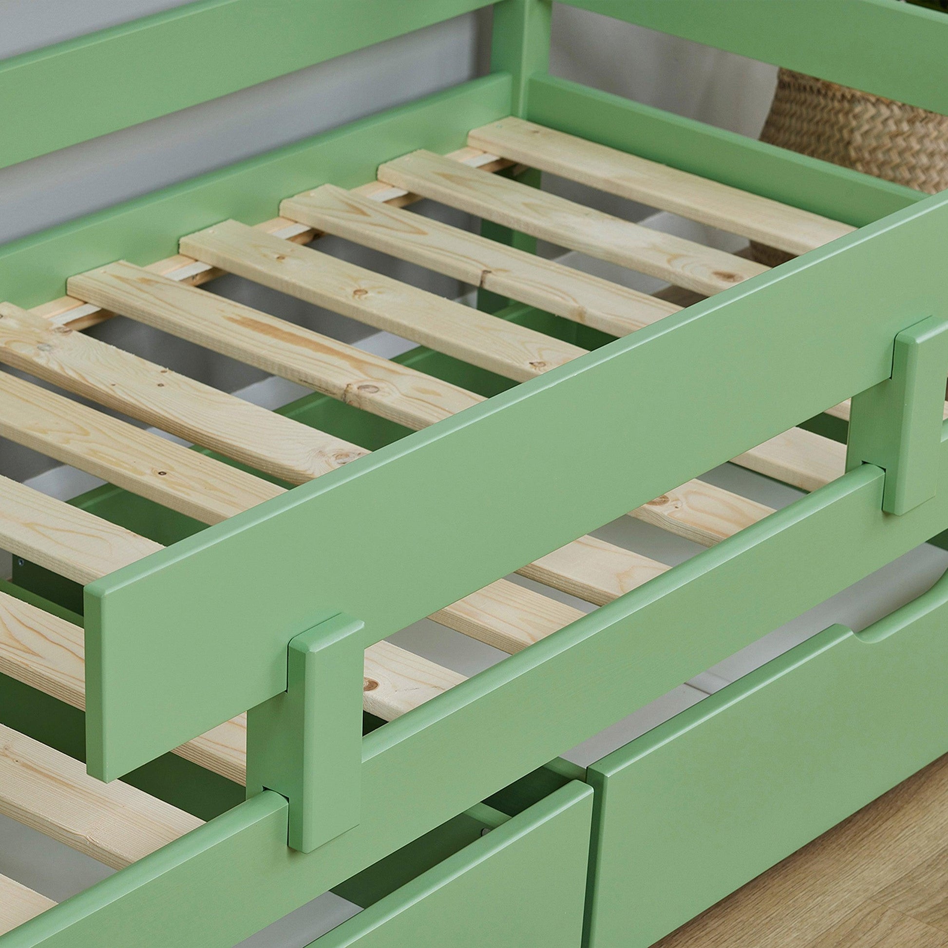 The smart bed rail for the ECO Comfort junior bed makes it easy and quick to transform the bed from a play space to a safe sleeping area. The bed rail can be easily attached or removed as needed. It can also be screwed in place if a stronger or more permanent solution is desired.