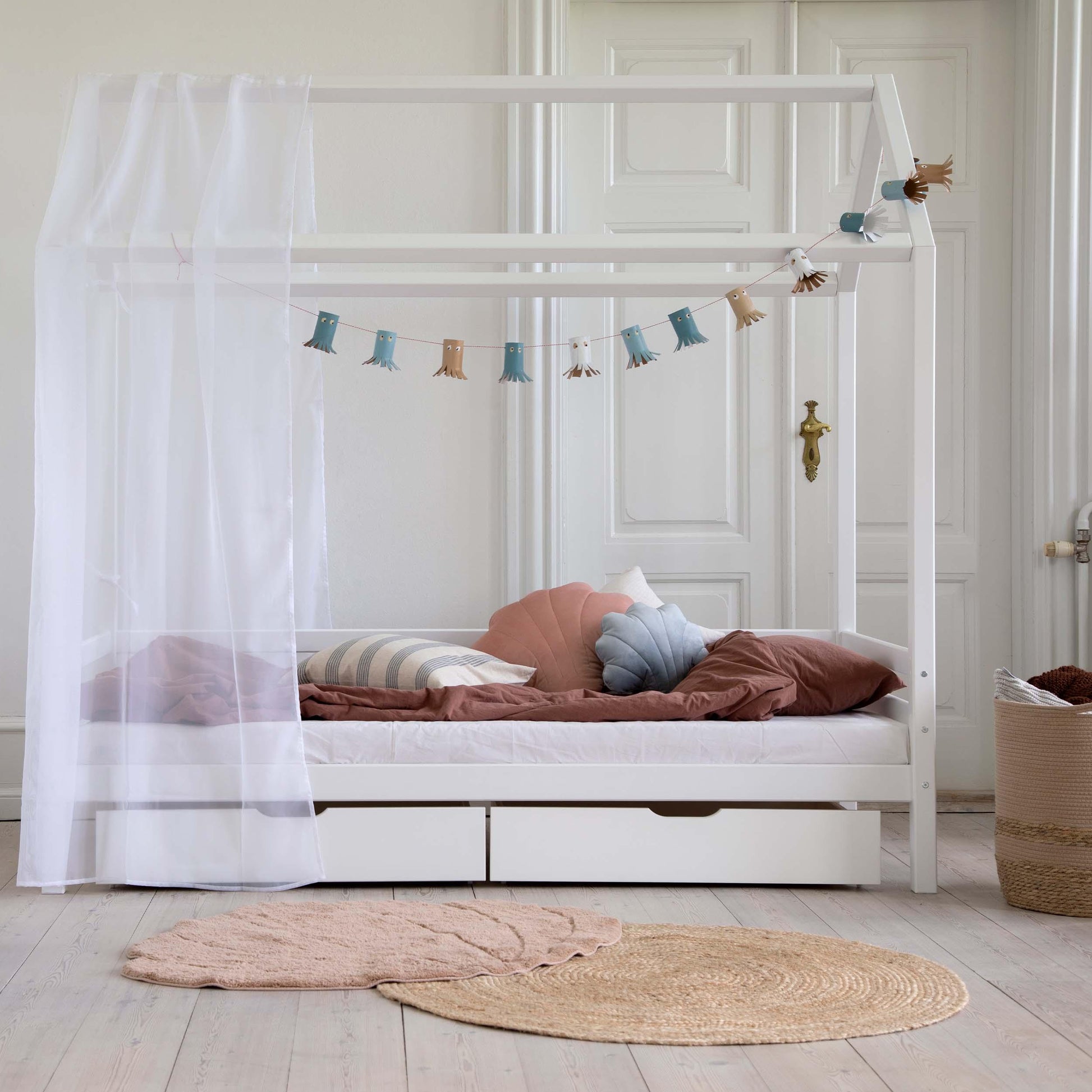 There is plenty of storage space underneath the bed. The practical drawers from Hoppekids fit perfectly under the bed and offer space for toys, bedding, or other items.