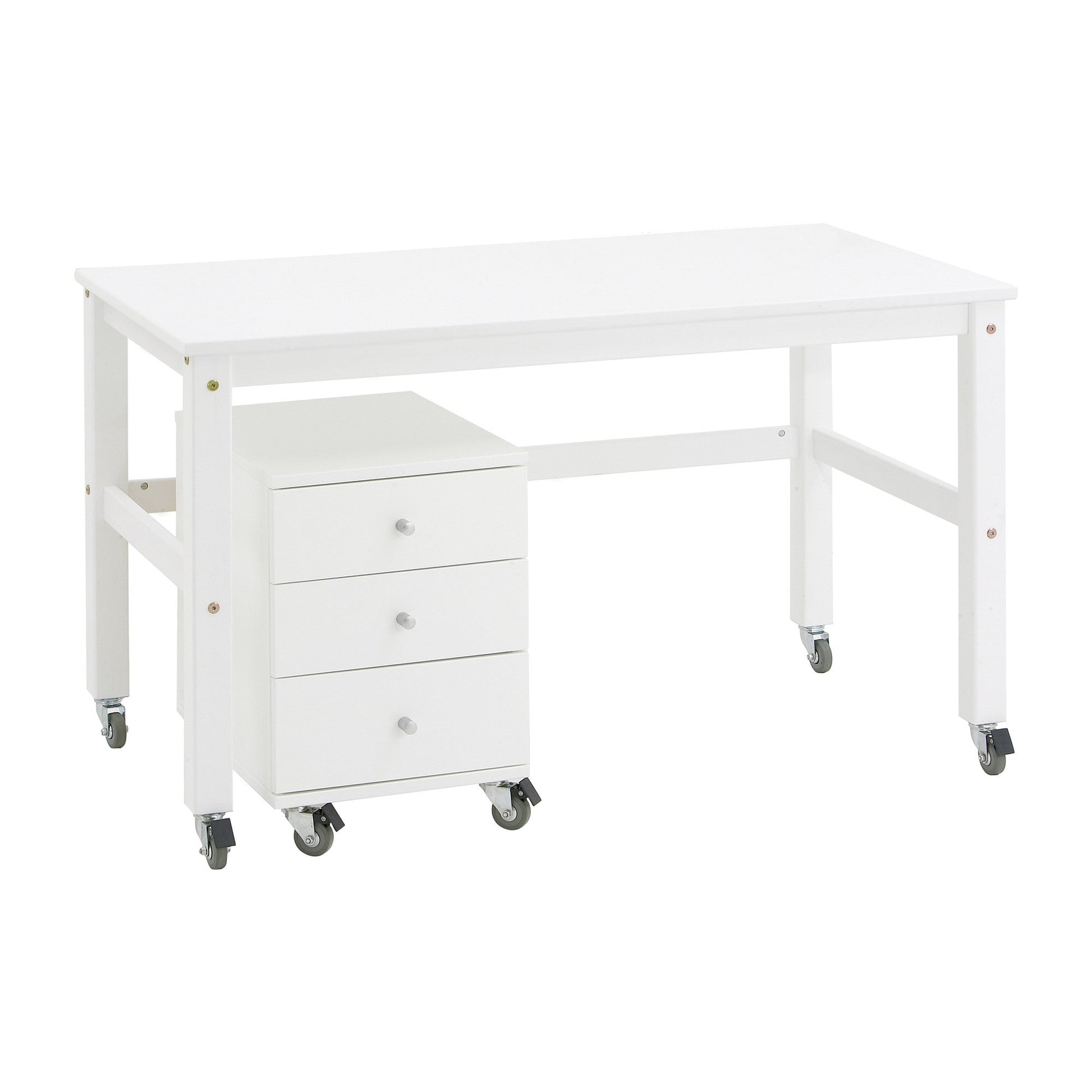 This package offers a flexible solution for the children's room with a bed, desk, and drawer unit.