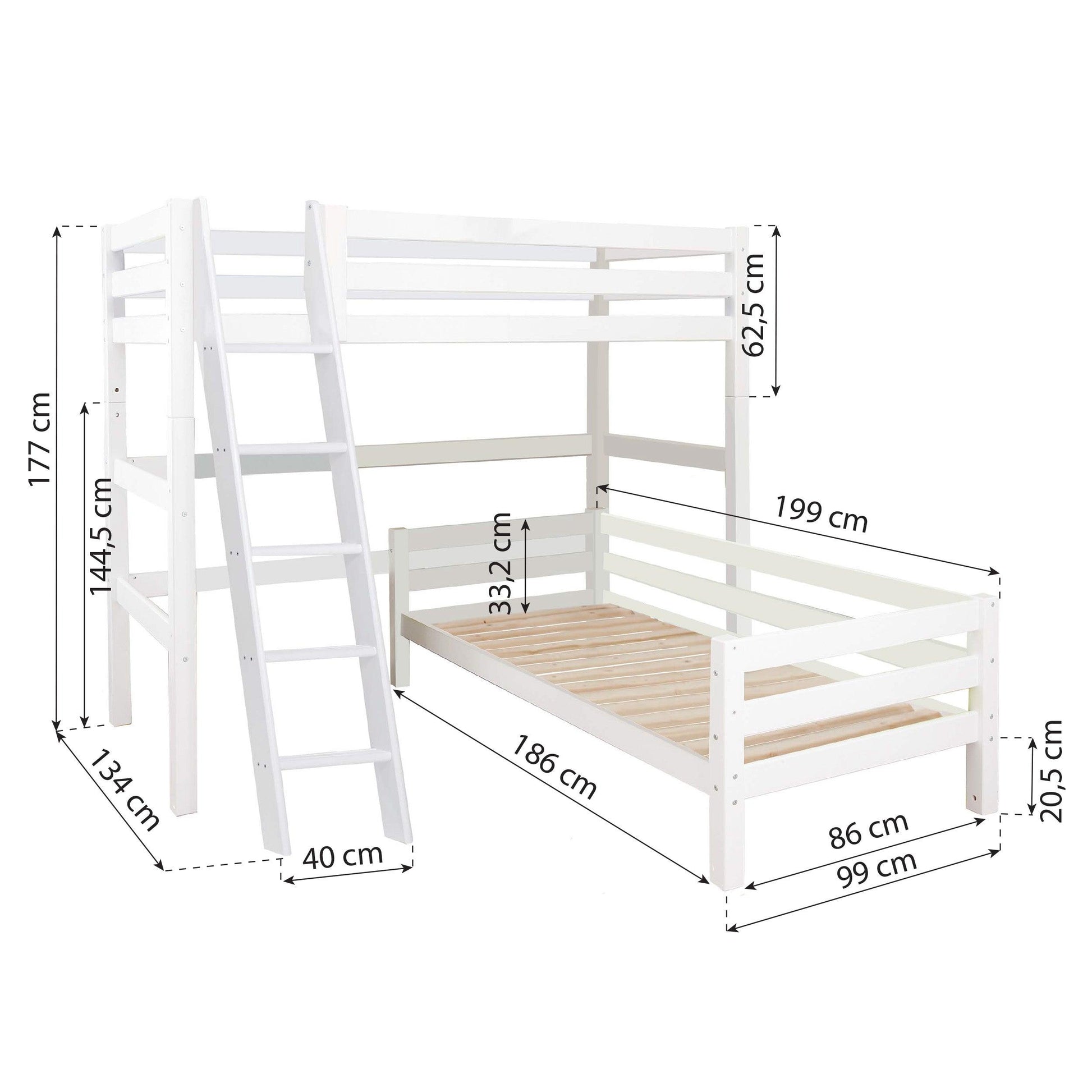 - Bed size, straight ladder: L209 x H177 x D104 cm