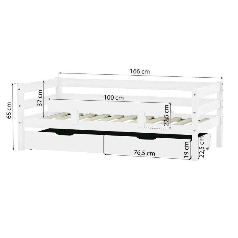 Hoppekids ECO Comfort, Toddler Bed, 70x160cm, with drawers and bed rail