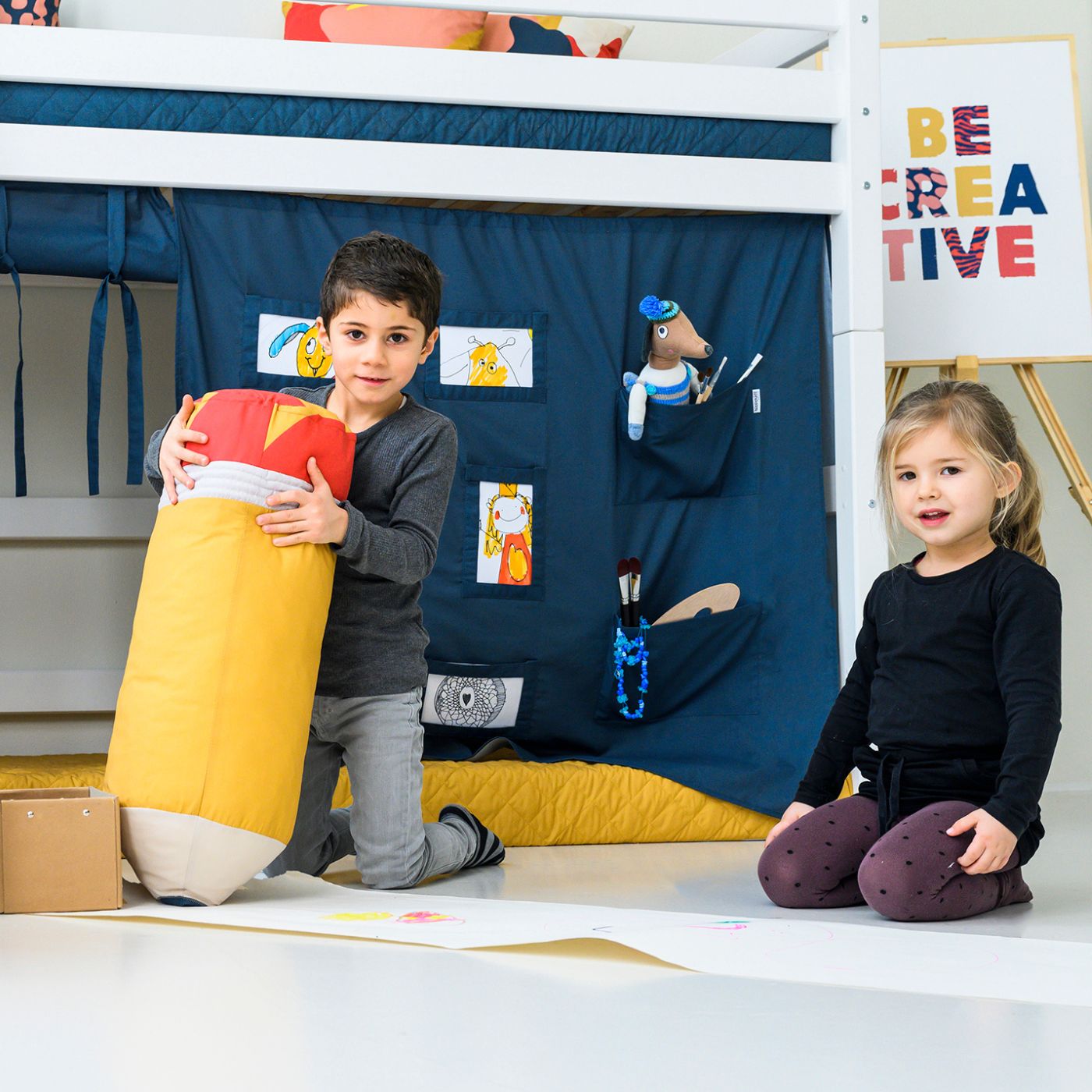 Transform the bed into a world of imagination with the unique Creator curtain! Once installed, the bed becomes a spaceship, time machine, art studio, or whatever your child imagines—the sky is the limit.