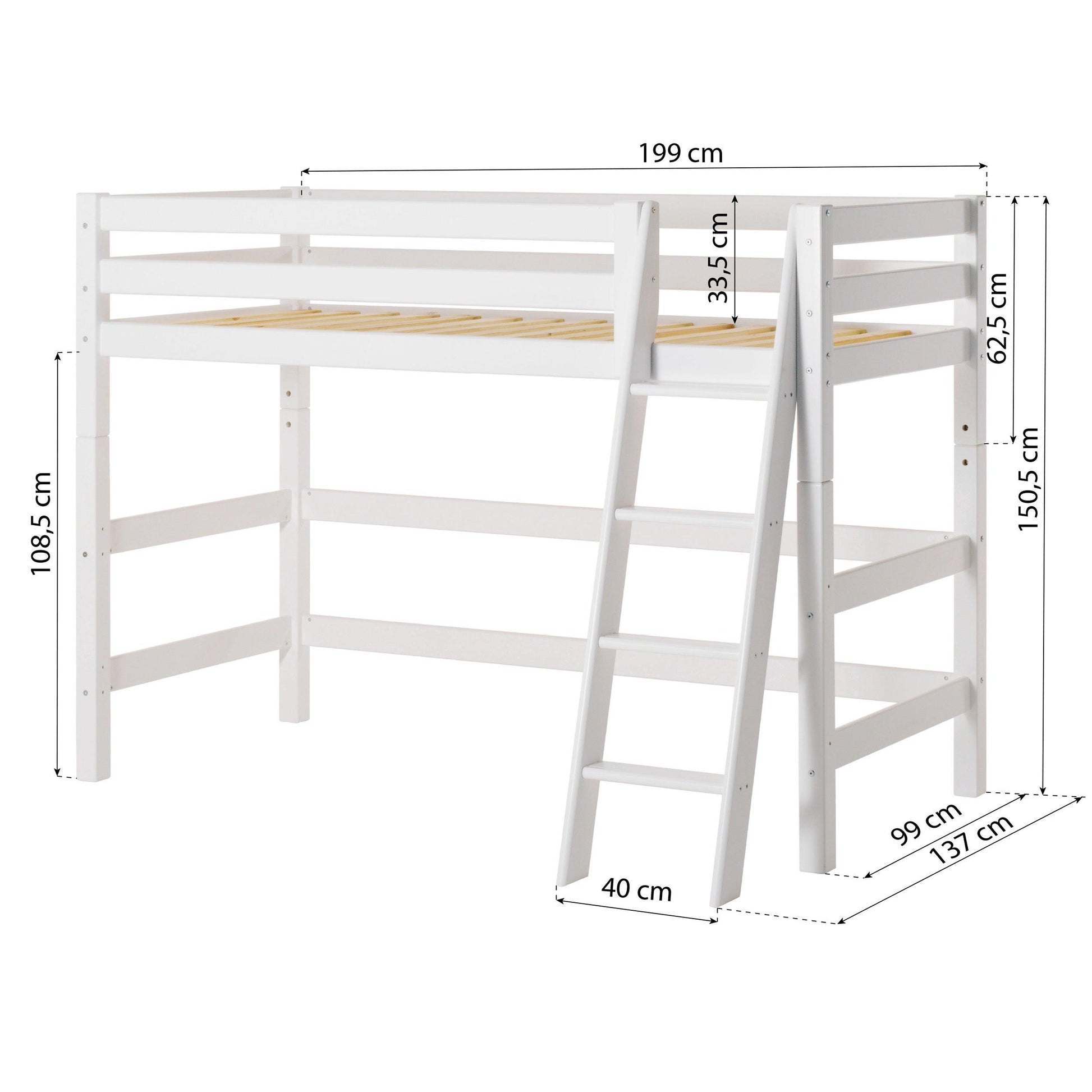 Bed dimensions: L209 x H150 x D104/137 cm (with straight or slanted ladder)