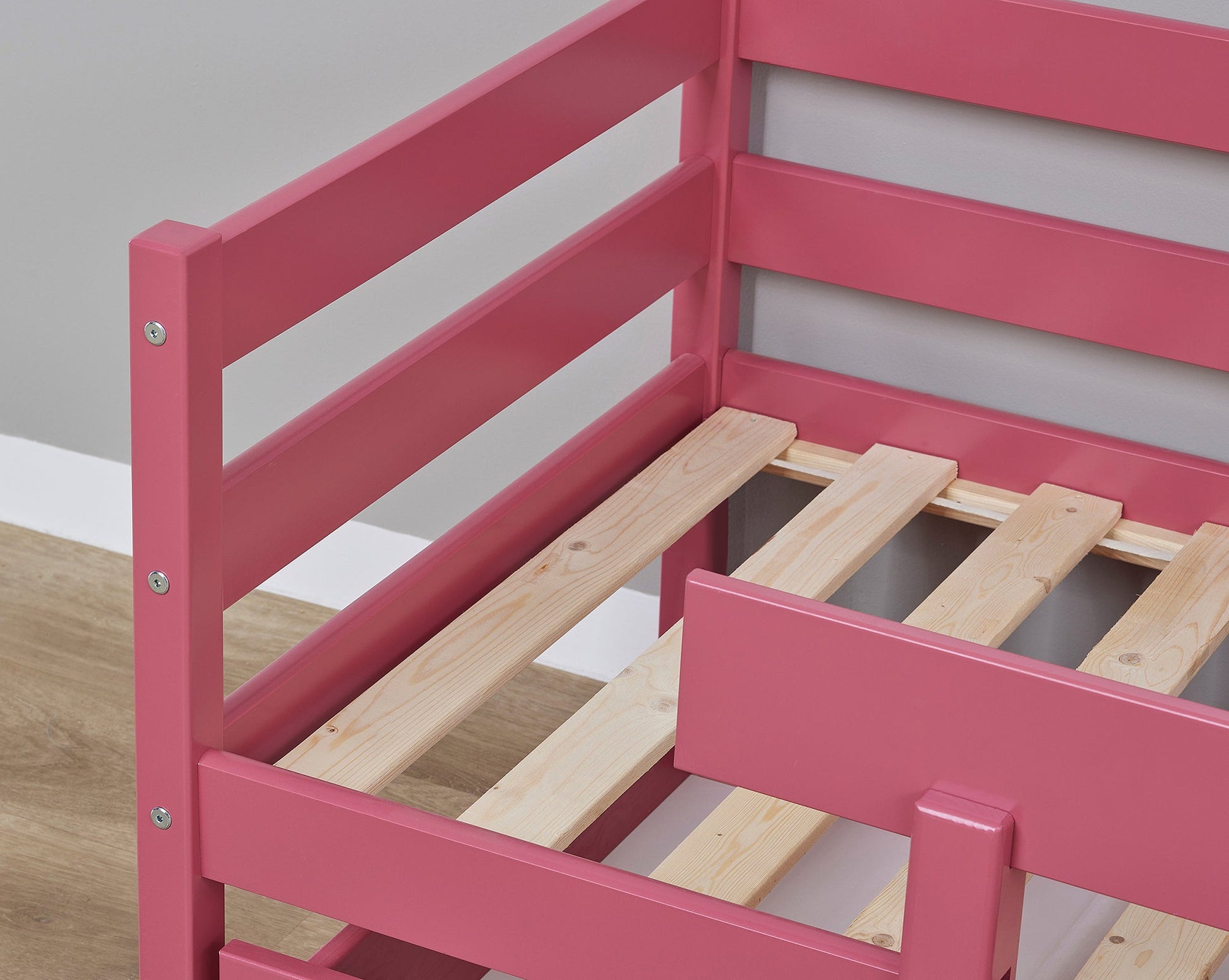 The bed is available in beautiful untreated solid pine wood, which you can either use in its natural appearance or paint with a water-based color of your choice. You can also choose one of our 7 beautiful colors.